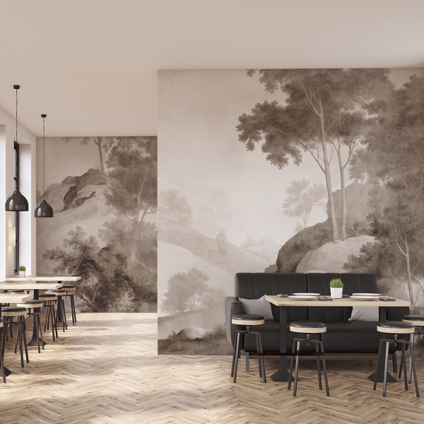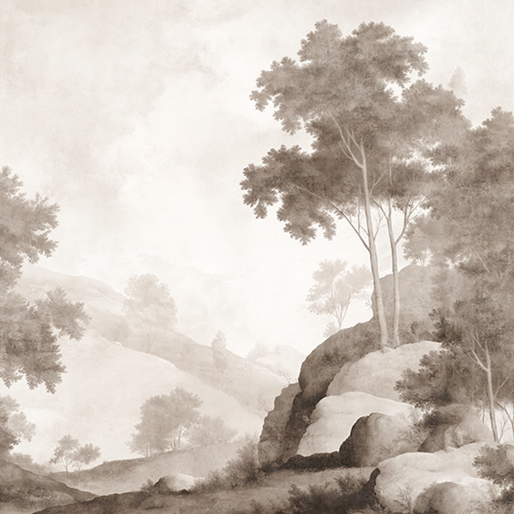 The Celestial Breath Cream wallpaper captures clouds sliding over timeless landscapes. It turns static walls into poetic, dynamic skies. Painted in soft blues and grays with terracotta accents, it evokes a sense of lift and transcendence, as if your interior had been touched by the sky.
