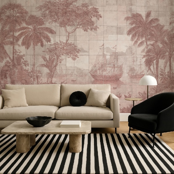 Suited to grand living rooms, boutique hotels, or cultural salons, Golden Harbor Rose turns walls into compelling narratives. The handcrafted artwork and the light, luminous palette bring a timeless sense of luxury.