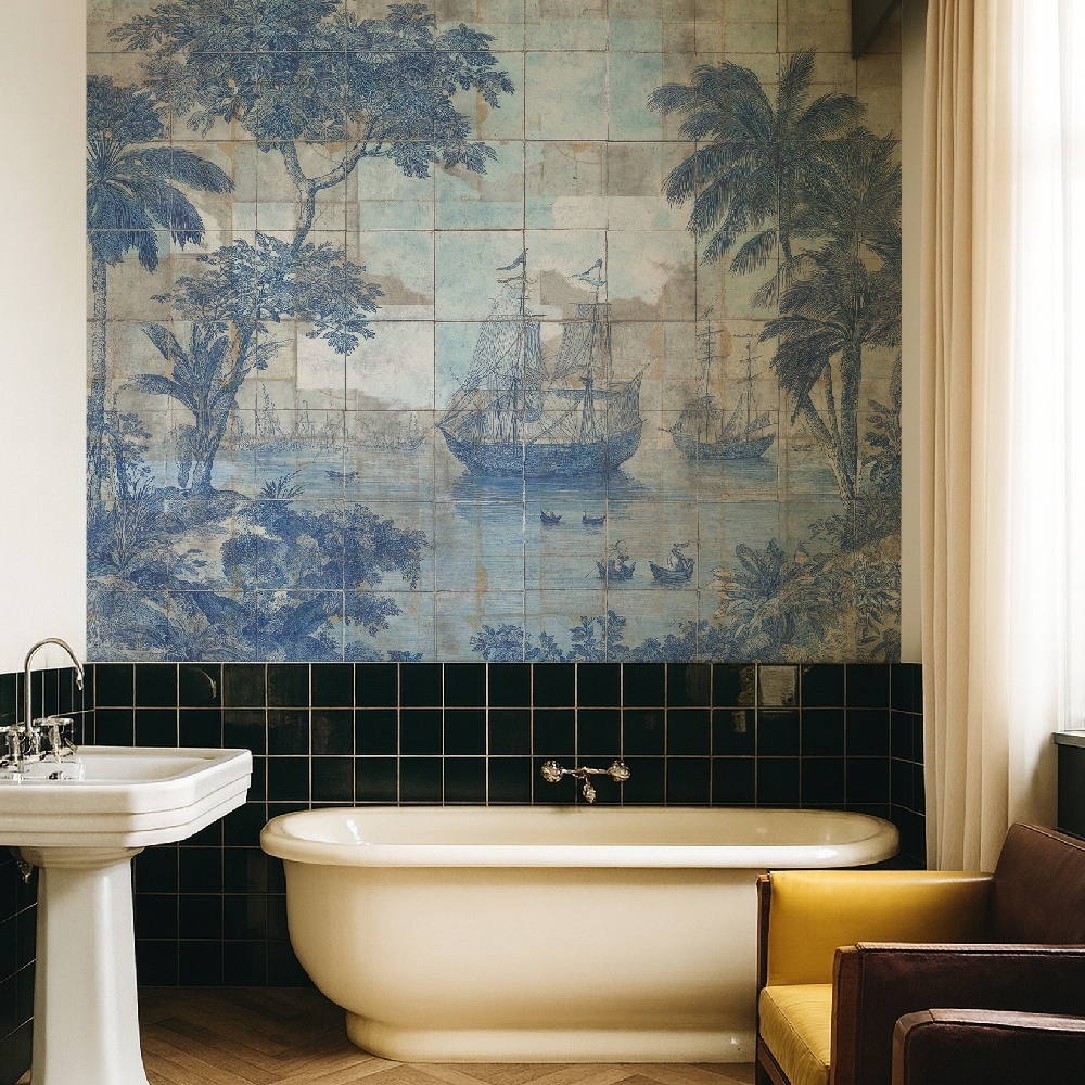 This mural aligns with luxury wallpaper, artistic wall coverings, handcrafted decor, and timeless interior design. In Golden Harbor, VLAdiLA offers more than decoration — it offers a journey into poetic heritage.