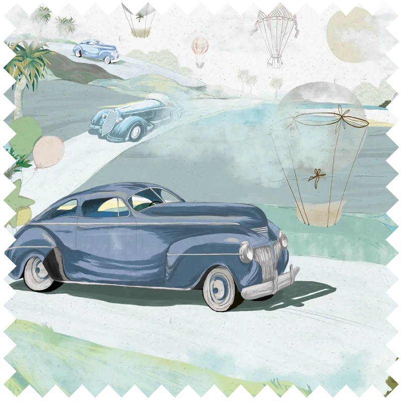 To transform your space into a sanctuary of cosy luxury, you mustn't lose sight of the deeply sensory experience it has to offer. With the Retro cars (blue) fabric pattern, you'll experience complete relaxation with your senses. In this way, your whole being can surrender to a state of bliss.