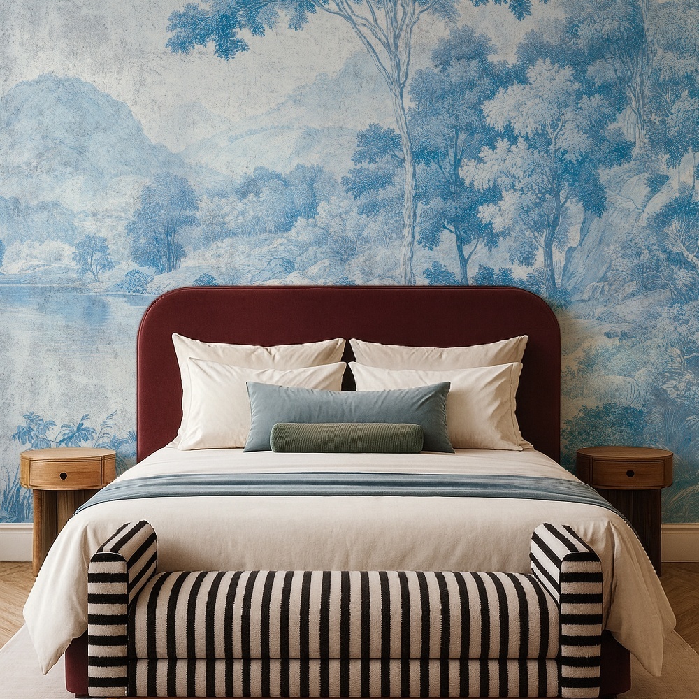 Slumbering Lake positions itself as luxury wallpaper, a handcrafted mural, an artistic wall covering, and a timeless decor. It exemplifies the House of VLAdiLA style: evocative, poetic, and decadent. It is designed to elevate interiors into spaces of art and memory.